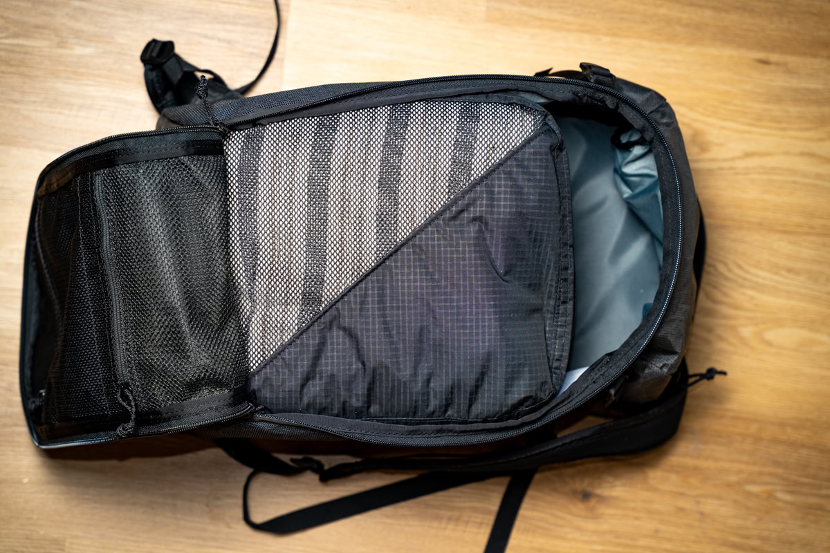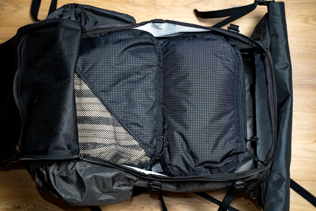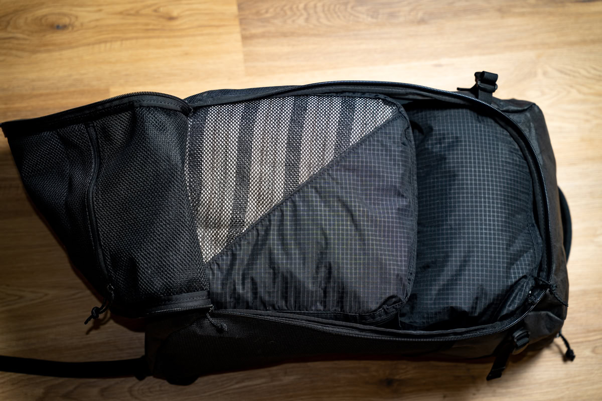 When testing the real world results of what all these liters and measurements mean we found the simple answer is: 6 days of clothes before you need a laundry stop. One large cube held six large T-shirts, six pairs of socks, and six pairs of underwear with room to breathe. The second carried two pairs of pants, two pairs of shorts, and two button-down shirts, giving you enough outfit options for a six-day trip with zero stress. This loadout also leaves plenty of room in the pack for bulkier stuff like jackets, electronics, toiletries and your laptop.