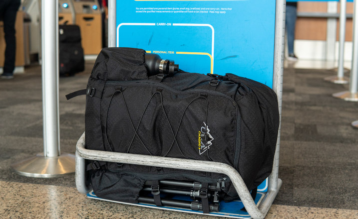 A: Yes. The Camino was designed with air travel in mind. At 22 x 13 x 8.25 with the collar rolled down, the Camino meets standard Federal Aviation Administration (FAA) regulations for carry-on luggage. However, it is always best to check with your specific airline before traveling, especially when flying with smaller airlines. Also, don’t forget to leave the bear spray, stove fuel, and pocket knives at home.